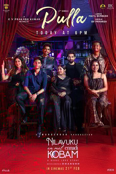 இந்த நிலையில், நிலவுக்கு என்மேல் என்னடி கோபம் படத்தின் ’புள்ள’ பாடல் இன்று மாலை 6 மணிக்கு வெளியாகும் என்று அதிகாரபூர்வமாக அறிவிக்கப்பட்டுள்ளது.