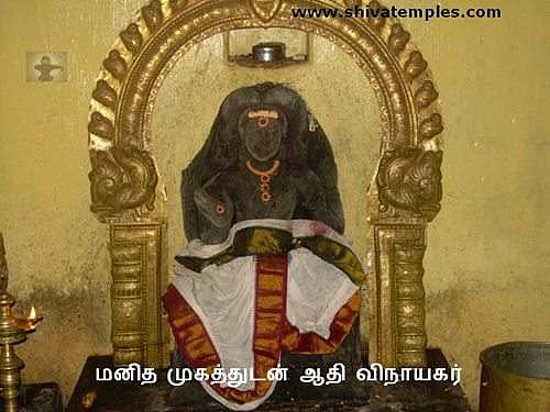 இவ்வாலயத்தின் மற்றொரு சிறப்பு, கோயிலில் வீற்றிருக்கும் ஆதி விநாயகர் சந்நிதி. யானை முகத்துக்கு முந்தைய விநாயகர் என்பதால், இங்கு விநாயகர் தும்பிக்கையில்லாமல், வலக்கால் தொங்கவிட்டு, இடக்கால் மடித்து, இடக்கையை இடக்காலின் மீது வைத்து, வலக்கை சற்று சாய்ந்த அபயகரமாக விளங்க, மனித முகத்துடன் அழகான கோலத்தில் காட்சி தருகின்றார்.