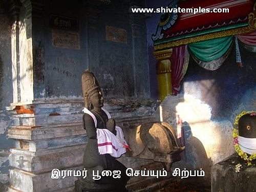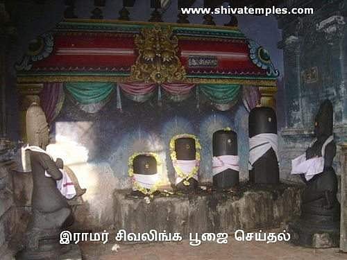 கருவறைக்குப் பின்புறத்தில் இந்த லிங்கங்களையும், ராமர், லட்சுமணர் இவ்வாறு தர்ப்பணம் செய்யும் நிலையிலுள்ள சிற்பத்தையும் கோயில் பிராகாரத்தில் காணலாம். இவர் வலது காலை மண்டியிட்டு, வடக்கு நோக்கி திரும்பி வணங்கியபடி காட்சி தருகிறார். சூரியன், சந்திரன், யானை, சிங்கம், இராமர், இலக்குவன் ஆகியோர் இத்தலத்தில் வழிபட்டுள்ளனர்.