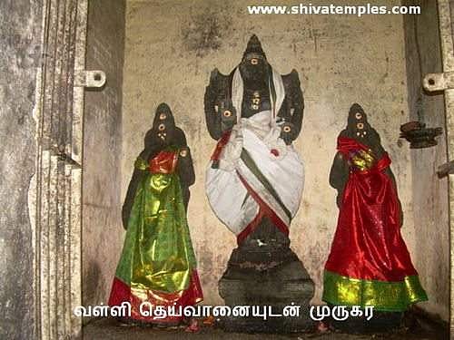 இத்தலத்து முருகப்பெருமானை அருணகிரிநாதர் தனது திருப்புகழில் பாடியுள்ளார். திருப்புகழில் இத்தலத்து முருகன் மீது ஒரு பாடல் உள்ளது. இத்தலத்தில் முருகப்பெருமான் ஒரு திருமுகத்துடனும் நான்கு திருக்கரங்களுடனும் தனது தேவியர் இருவருடன் நின்ற கோலத்தில் கிழக்கு நோக்கி எழுந்தருளியுள்ளார்.