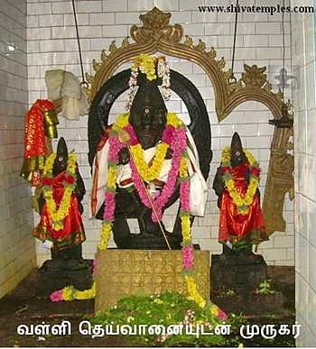 இத்தலத்தில் முருகப்பெருமான் ஒரு திருமுகத்துடனும் நான்கு திருக்கரங்களுடனும் தனது தேவியர் இருவருடன் நின்ற கோலத்தில் கிழக்கு நோக்கி எழுந்தருளியுள்ளார். குமரக்கட்டளை மண்டபத்தில் தென்புறம் பெரியவிநாயகரும், வடபுறத்தில் ஆறுமுகனும் எழுந்தருளியுள்ளனர். வெளிப் பிராகாரத்தில் வடக்கு மதிலை ஒட்டி கிழக்கு முகமாக உள்ள கோவிலில் ஆதி மாயூரநாதர் எழுந்தருளியுள்ளார். வடபுறம் உள்ள அம்மன் சந்நிதியில் அன்னை அபயாம்பிகை நின்ற திருக்கோலத்தில் நான்கு கைகளுடன், மேற்கரங்கள் இரண்டில் சங்கு சக்கரமும், இடது திருக்கரம் தொடை மேல் தொங்கவும், வலது திருக்கரத்தில் கிளியை ஏந்தி காட்சி தருகிறாள்.