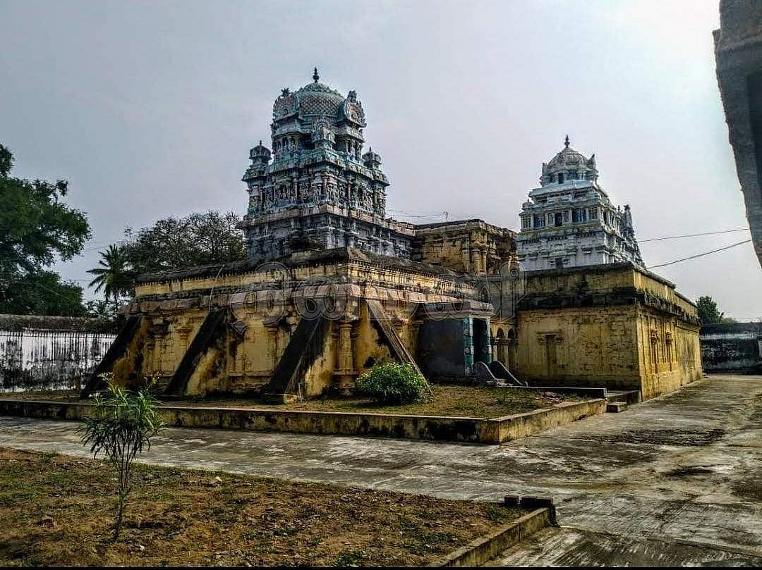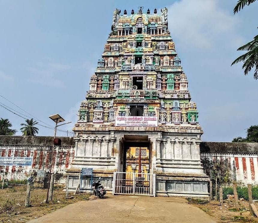 நஞ்சை நிலங்களுக்கு நடுவில் இந்த திருக்கோயில் கிழக்கு நோக்கி அமைந்துள்ளது. திருக்கோயில் முன்பு ராஜகோபுரம் சுமார் 70 அடி உயரத்தில், 5 கண்களை உடையதாக, உச்சியில் நீல மின் விளக்குடன் விளங்குகிறது. முன்கோபுரத்தை அடுத்து உள்ளே வாகன மண்டபம் உள்ளது. உள்பிரகாரத்தில் தெற்கில் தெட்சிணாமூர்த்தியும், மேற்கில் நிருதி கணபதியும், வில்லுடன் கூடிய சுப்பிரமணியர், கெஜலெட்சுமி மற்றும் வடக்கில் வில்வமரமும் அதன் பாதத்தில் நாகமும் உள்ளன.