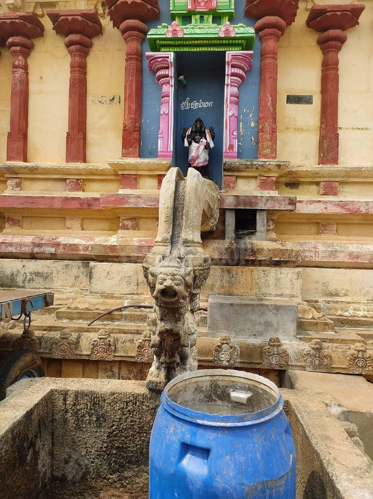 இக்கோயிலின் இறைவன் கருவறை சன்னதியில் நடைபெறும் அபிஷேகத்தின் வெளியேறும் தீர்த்த நீர் சென்றடையும் வகையில், தீர்த்தத் தொட்டி அமைந்துள்ளது. இந்த தொட்டி ஒரே கல்லால் குடையப்பட்டுள்ளது என்பது கூடுதல் சிறப்பு. இவை கோமுகம் போன்றுள்ளது. யாளி முகம் போன்று பூதகணங்கள் தீர்த்தத் தொட்டியைத் தாங்கியிருப்பது கொண்டு வடிவமைக்கப்பட்டிருக்கிறது. இந்த வடிவமைப்பு குறிப்பிட்ட சில கோயில்களில்தான் காணப்படும்.