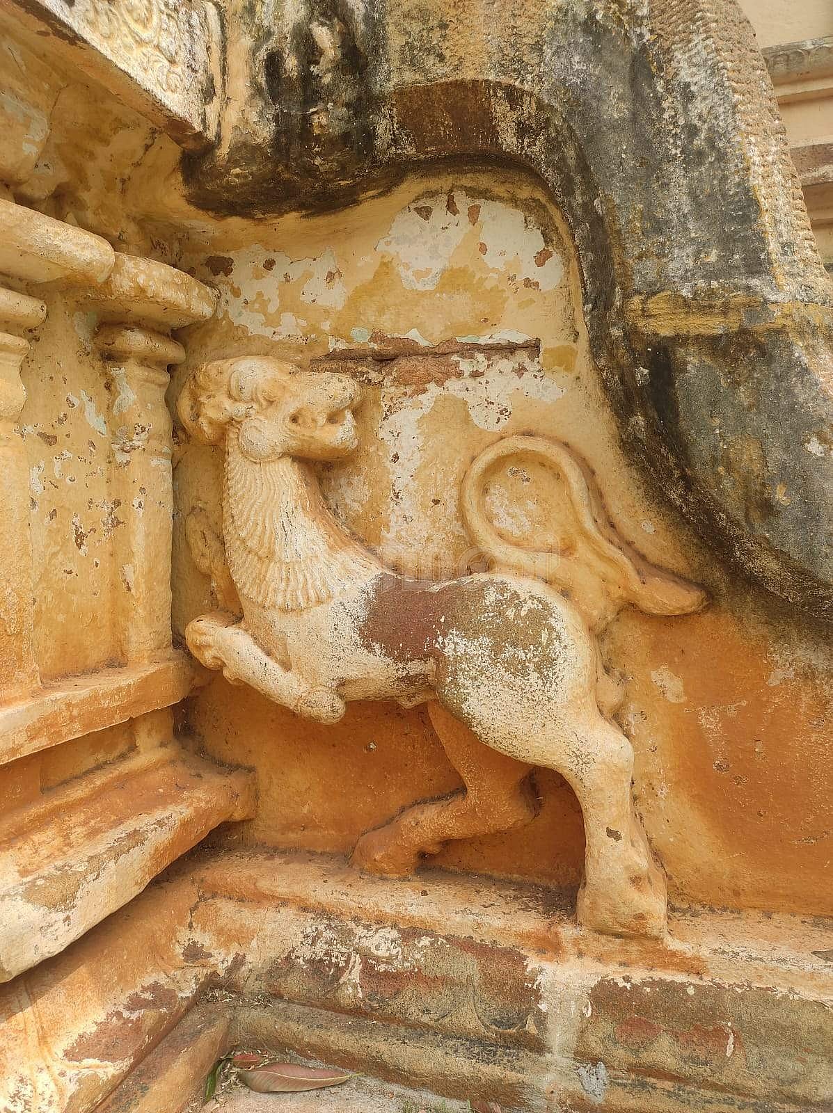 <strong>யாளி முகமும் சிங்க உடலும் கொண்டு காணப்படும் அழகிய சிற்பம்</strong>