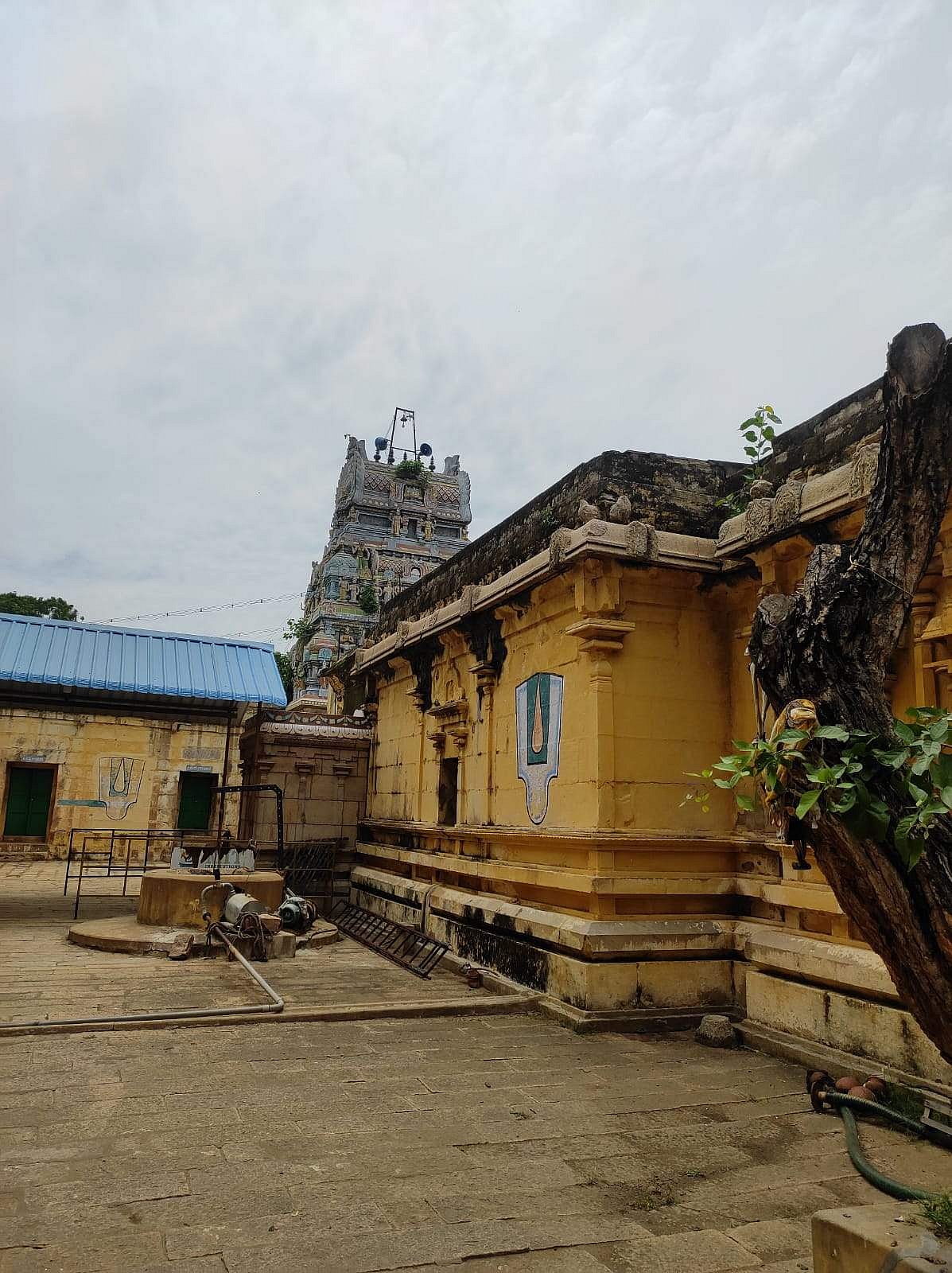 சிவபெருமானுக்கு உகந்த வில்வமரத்தடியில் பெருமாளின் திருவடிகள் உள்ளன. இதன் அருகிலேயே ஆண்டாள் நாச்சியார் தனிச்சன்னதி கொண்டு காட்சியளிக்கிறார். ஆண்டாள், ராமானுஜர், நம்மாழ்வார், திருமங்கையாழ்வார், பிள்ளைலோகாச்சாரியார், மணவாளமாமுனிகள் ஆகியோர் பிரகாரத்தில் உள்ளனர். மூலவர் விமானம் வேத விமானம் என்றழைக்கப்படுகிறது.