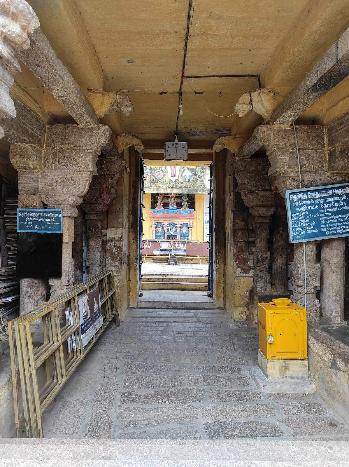 <strong>கோயிலின் உள் பிரகார மண்டப நுழைவுப் பகுதி</strong>