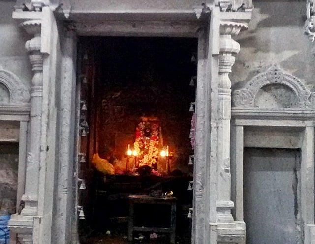 பலி பீடம் விலகிய நிலையில் இக்கோயிலில் உள்ளது. முந்தைய காலத்தில் கணக்கர் செய்த தவறினால் சுவாமியின் பானம் செல்வதற்கு ஏதுவாக பீடம் விலகியதாகக் கூறப்படுகிறது. இந்த கோலத்தை இக்கோயிலில் காணலாம்.