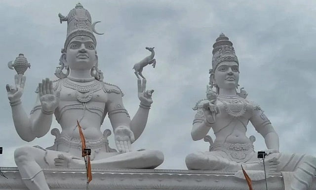 கண்ணப்பர் மலையில் ஏற்படுத்தப்பட்டுள்ள சிவன், பார்வதி சிலைகள்.