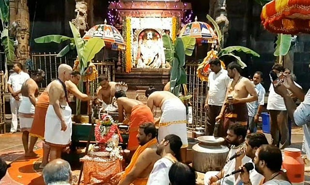 அந்தணர் ஒருவரால் இந்தக் கோயில் பராமரிக்கப்பட்டு வந்தது. அவர் தினமும் நீண்ட தூரம் பயணம் செய்து கோயிலுக்கு வந்து பூஜை செய்வது வழக்கம். அவ்வாறு பூஜை செய்யும்போது ஒரு நாள் லிங்கத்திற்கு அருகில் மாமிசம் இருந்ததைக் கண்டு அதிர்ச்சியடைந்தார். இதை ஏதோ விலங்குதான் செய்திருக்கும் என்று எண்ணி கோயிலைச் சுத்தம் செய்து தன் பூஜைகளை முடித்துவிட்டுச் சென்றார். தினமும் இதே நிலை தொடர கோயிலில் இருந்த மாமிசத்தையும், லிங்கத்தின் மீது இருந்த எச்சிலையும் கண்டு தாங்க முடியாமல் அந்தணர் அருவருப்படைந்தார்.