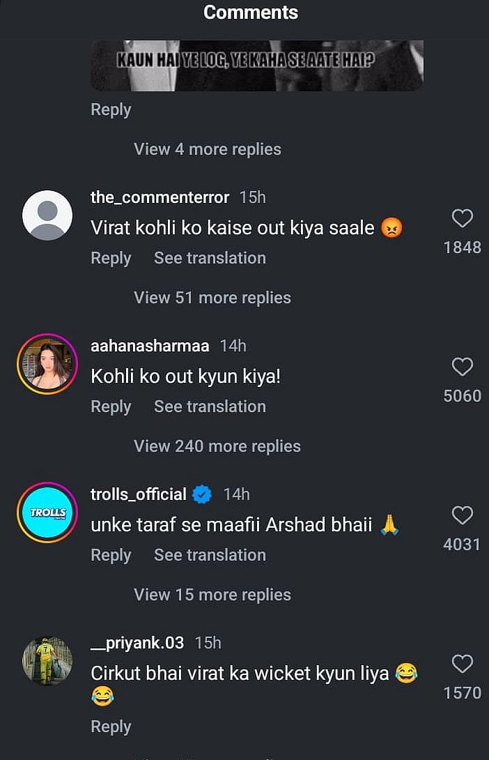 இதனால் விராட் கோலி ரசிகர்கள் அவரை திட்டுவதற்கு பதிலாக பாலிவுட் நடிகர் அர்ஷத் வர்ஷியை திட்டி வருகிறார்கள்.
