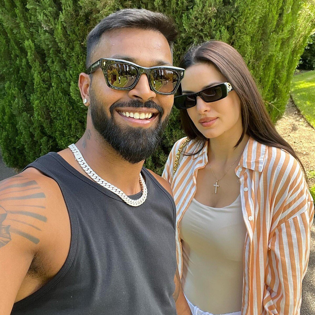 மனைவியுடன் ஹார்திக் பாண்டியா.