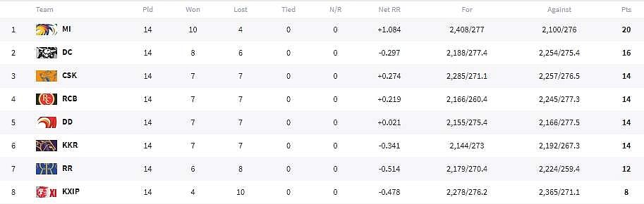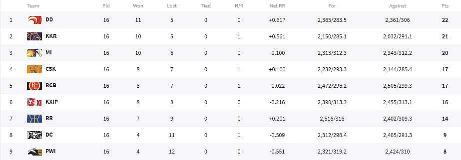 பிளே ஆஃப்-பில் பங்கேற்ற அணிகள்: (வரிசைப்படி) தில்லி, கொல்கத்தா, மும்பை, சென்னை