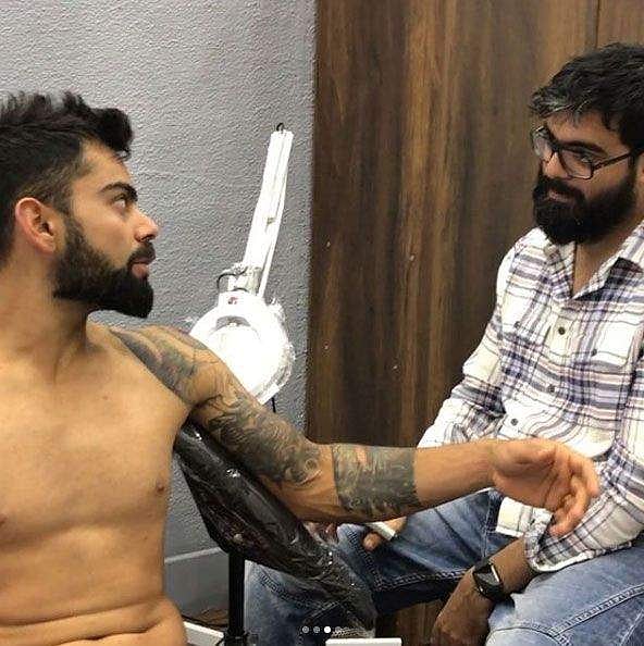 அந்த வரிசையில் சமீபத்தில் டாட்டூ கடையில் எடுக்கப்பட்ட விராட் கோலியின் புகைப்படம் ஒன்று இணையத்தில் வைரலானது. விராட் கோலி ஒரு டாட்டூ பிரியர் என்பது அவரது ரசிகர்களுக்குத் தெரியும். உடலில் பல இடங்களில் டாட்டூ வரைந்து கொள்வது அவருக்கு மிகவும் பிடிக்கும்.