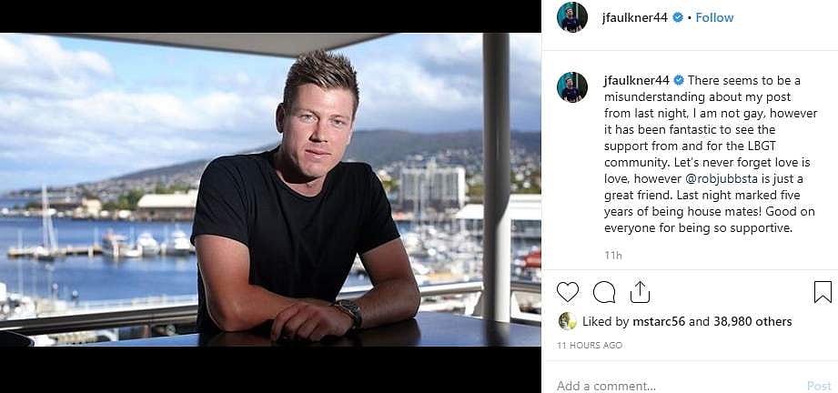 நான் ஓரினச்சேர்க்கையாளர் கிடையாது என்று ஆஸ்திரேலிய ஆல்-ரவுண்டர் ஜேம்ஸ் ஃபால்க்னர் விளக்கமளித்துள்ளார்.
