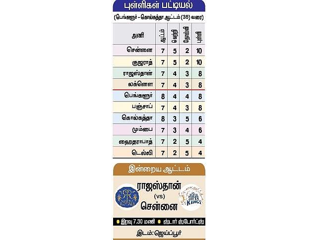 பெங்களூா் தரப்பில் வனிந்து ஹசரங்கா, விஜய்குமாா் வைசாக் ஆகியோா் தலா 2, முகமது சிராஜ் 1 விக்கெட் கைப்பற்றினா்.