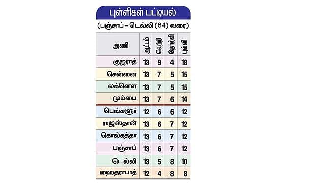 ஐபிஎல் போட்டியின் 64-ஆவது ஆட்டத்தில் டெல்லி கேப்பிட்டல்ஸ் 15 ரன்கள் வித்தியாசத்தில் பஞ்சாப் கிங்ஸை புதன்கிழமை வென்றது. இந்தத் தோல்வியால் பிளே-ஆஃப் வாய்ப்பை ஏறத்தாழ இழந்த நிலைக்கு வந்துவிட்டது பஞ்சாப்.