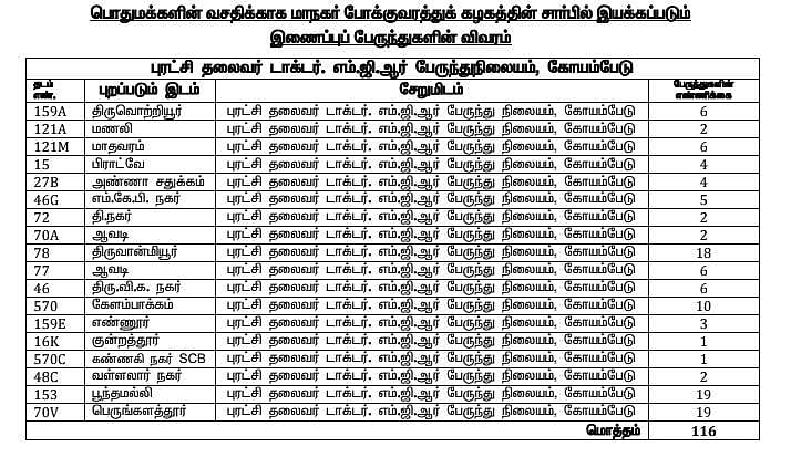 பொங்கல் பண்டிகையை முன்னிட்டு சிறப்பு பேருந்து நிலையங்களுக்கு சென்றிட ஏதுவாக, மாநகர் போக்குவரத்துக் கழகத்தின் சார்பில், 24 மணி நேரமும் கூடுதல் 310 சிறப்பு இணைப்பு பேருந்துகள் இயக்கப்படும் என்று மாநகர்