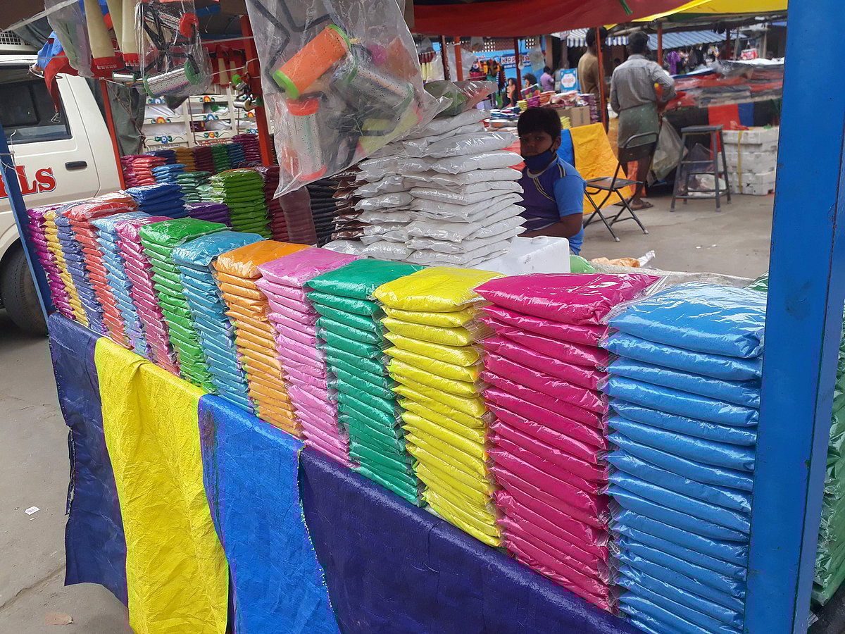 வண்ணக் கோலப்பொடிகள், கோலமிடும் சாதனங்கள் விற்பனை: பொங்கல் பண்டிகையன்று வீடுகளின் முன்பாக பெண்கள் பல வண்ண கோலங்களை இடுவர்.