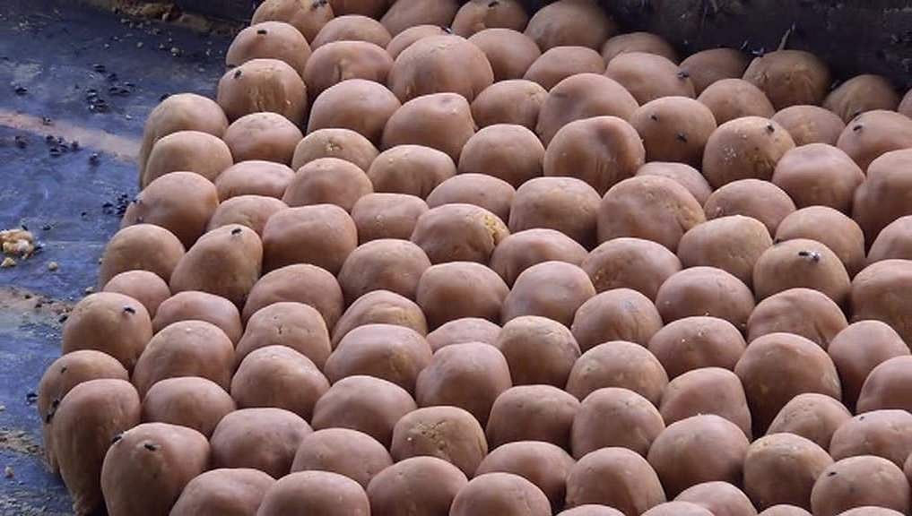 பொங்கல் பண்டிகையையொட்டி, பிலிக்கல்பாளையம் வெல்ல ஆலை ஒன்றில் தயாராகும் உருண்டை வெல்லம்.