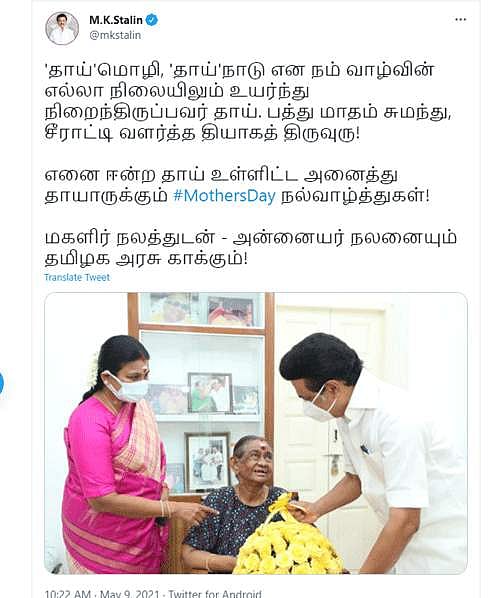 அன்னையர் தினம்: முதல்வர் மு.க.ஸ்டாலின் வாழ்த்து
