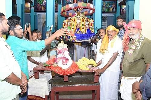 சிறப்பு அர்ச்சனைகளை செய்து வைத்து பக்தர்களுக்கு பிரசாதங்களை அர்ச்சகர் நாராயணன் வழங்கினார்.
