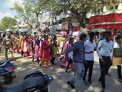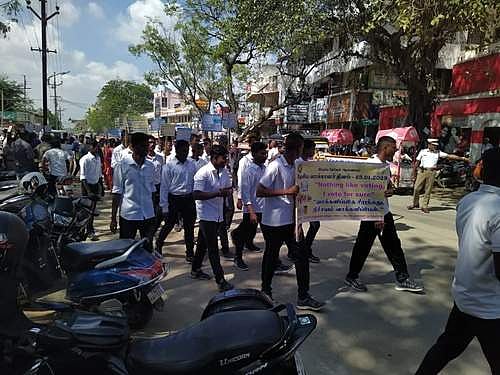 இப்பேரணியில் கல்லூரி மாணவ-மாணவிகள் வாக்களிப்பதில் அவசியம் குறித்த விழிப்புணர்வு பதாகைகளை ஏந்தியபடி சென்றனர். தொடர்ந்து, பள்ளி மாணவர்- மாணவியரின் விழிப்புணர்வு கலை நிகழ்ச்சி நடைபெற்றது.
