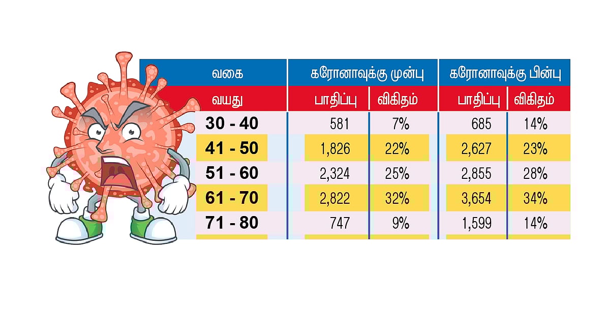 அதற்கு மேற்பட்ட வயதினரும் கணிசமாகப் பாதிக்கப்பட்டுள்ளனா். ஒட்டுமொத்தமாக கரோனாவுக்குப் பிறகு நான்கு மடங்கு அப்பிரச்னை அதிகரித்துள்ளது. அதாவது 15 சதவீதத்திலிருந்து 62 சதவீதமாக உயா்ந்துள்ளது என அந்த ஆய்வறிக்கையில் குறிப்பிடப்பட்டுள்ளது.