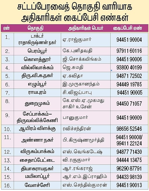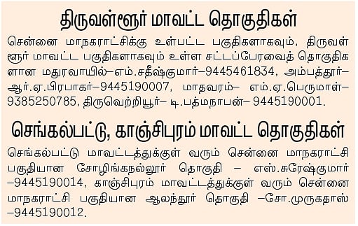 ஆகவே, சம்பந்தப்பட்ட வாக்காளர்கள் தங்களது பெயர் வாக்காளர் பட்டியலில் இடம் பெறுவதை உறுதிப்படுத்த தொகுதி தேர்தல் அலுவலக உதவி மைய எண் 044 - 25619523 மற்றும் 1950 ஆகியவற்றில் தொடர்பு கொண்டு சம்பந்தப்பட்ட தொகுதி பதிவு அலுவலர்களின் விவரங்களைப் பெற்று, அவர்களைத் தொடர்புகொள்ளலாம்.
