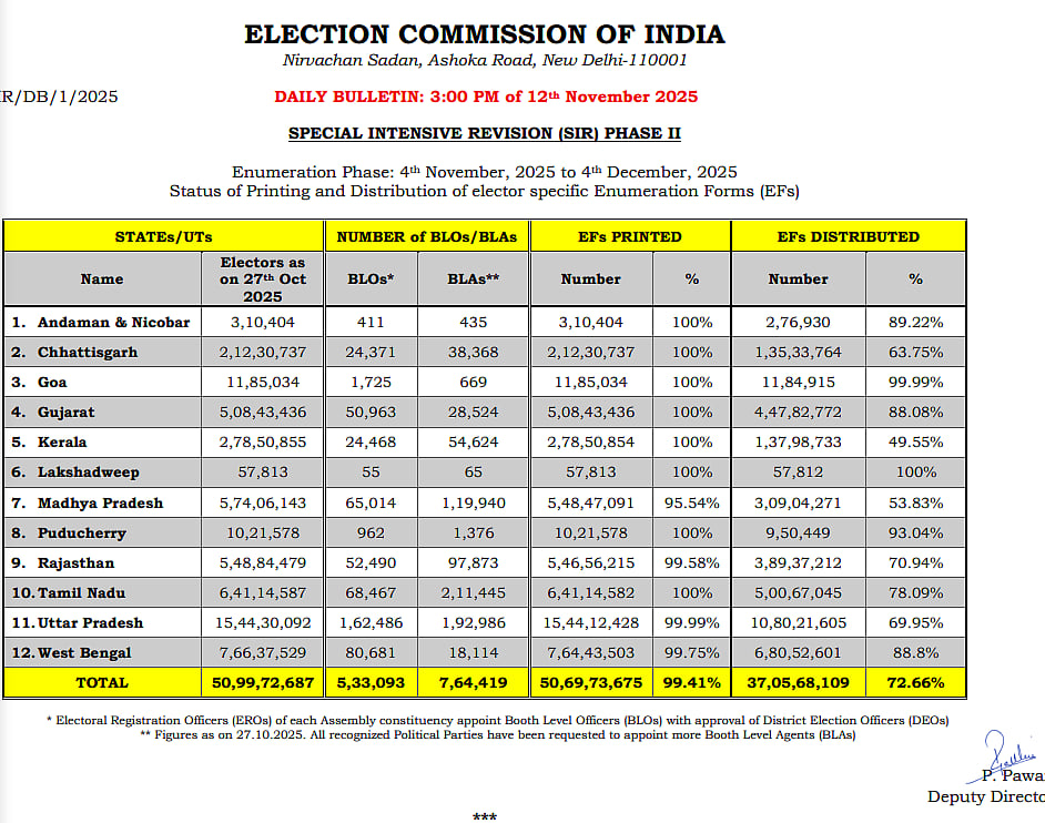 ஒட்டுமொத்தமாக 12 மாநிலங்களில் 37 கோடிக்கும் அதிகமான படிவங்கள் விநியோகம் செய்யப்பட்டுள்ளதாகத் தகவல் தெரிவிக்கப்பட்டுள்ளது.