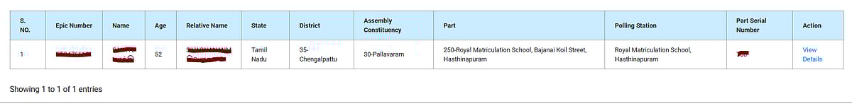 இறுதி வாக்காளர் பட்டியலில் பெயர் இருந்தால் கீழே தகவல்கள் கிடைக்கும். உங்கள் விவரங்களை விரிவாக பார்ப்பதற்கு ’வியூ டீடைல்ஸ்’ (view details) என்ற இடத்தில் கிளிக் செய்ய வேண்டும்.