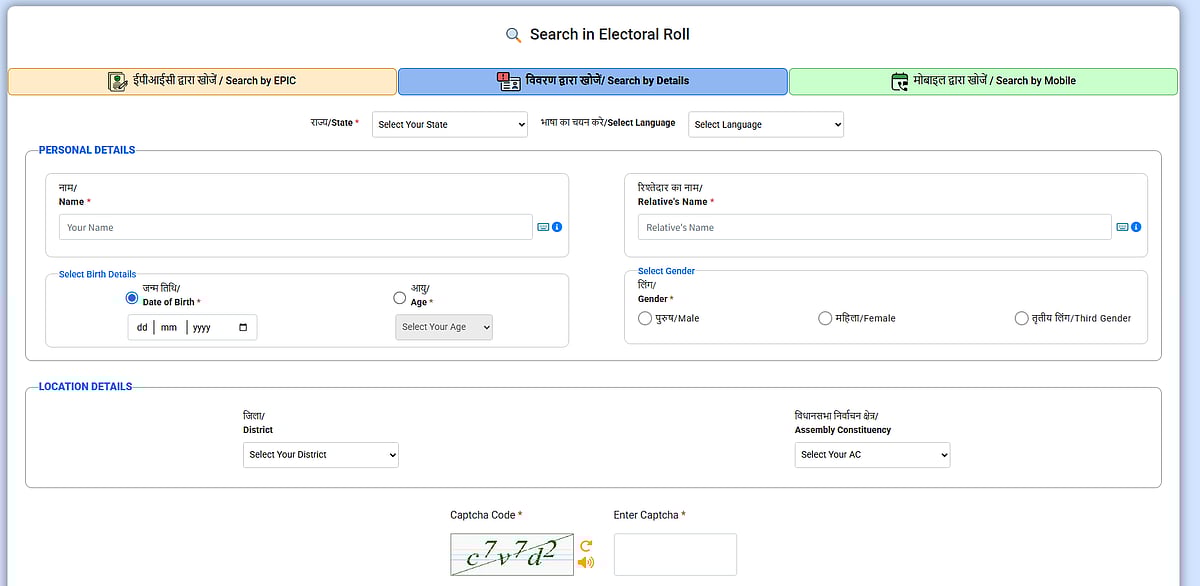 புதிய வாக்காளராக இருந்தால் அல்லது வாக்காளர் அடையாள அட்டை எண் தெரியாதவராக இருந்தால், தேர்தல் ஆணையம் கேட்டுள்ள தகவல்களை பதிவிட்டு பெயர் இருக்கிறதா என்பதை சரிபார்க்கலாம்.