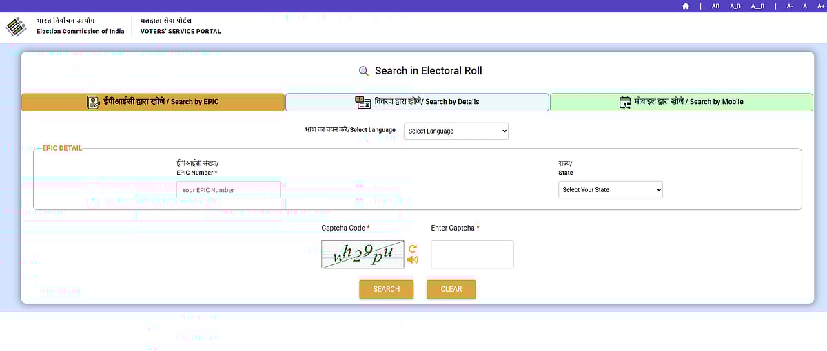 உங்கள் வாக்காளர் அடையாள அட்டையில் உள்ள எண் மற்றும் மாநிலத்தை பதிவிட்டு பெயர் இருக்கிறதா என்பதை சரிபார்க்க முடியும்.