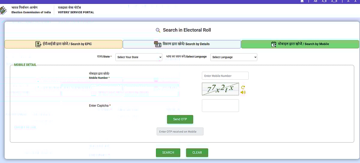 வாக்காளர் அடையாள அட்டையுடன் இணைக்கப்பட்டுள்ள உங்களின் தொலைப்பேசி எண்ணை பதிவிட்டு, அந்த எண்ணுக்கு வரும் ஓடிபி எண்ணை உள்ளிட்டு சரிபார்க்கலாம்.