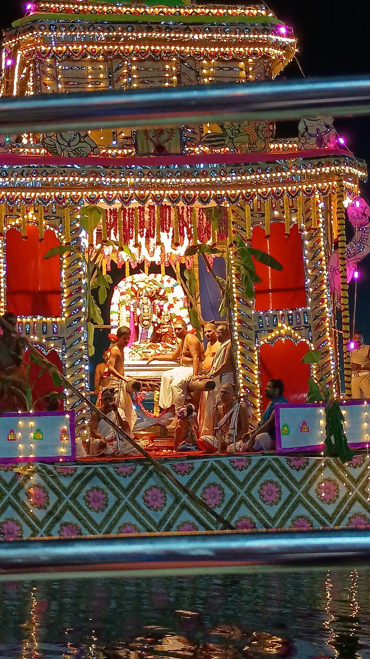 தெப்பல் உற்சவத்தில் நடராஜர் கோயில் உற்சவரான சிவகாமசுந்தரி அம்பாள் சமேத சந்திரசேகரர் எழுந்தருளி குளத்தை வளம் வந்து நீராழி மண்டபத்தில் வீற்று பக்தர்களுக்கு காட்சியளித்தார். நீராழி மண்டபத்தில் சிறப்பு ஆராதனைகள் நடைபெற்றன.