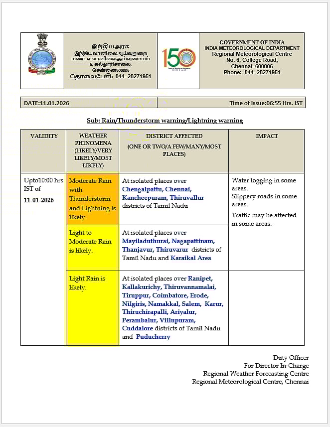இதுதொடர்ந்து மேற்கு திசையில் நகர்ந்து படிப்படியாக வலுவிழக்கும் என்று தெரிவிக்கப்பட்டுள்ள நிலையில், இதன் காரணமாக இன்று (ஜன. 11) தமிழகத்தில் ஒரு சில இடங்களிலும், புதுச்சேரி, காரைக்கால் பகுதிகளிலும் இடி, மின்னலுடன் கூடிய மிதமான மழைக்கு வாய்ப்புள்ளதாக தெரிவிக்கப்பட்டுள்ளது.