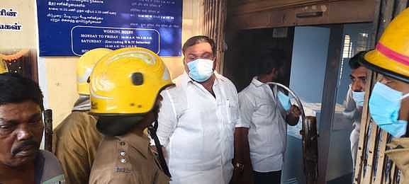 மாவட்ட தீயணைப்பு அலுவலா் மணிகண்டன் தீ விபத்தை நேரில் பாா்வையிட்டு ஆய்வு செய்தாா். மின்கசிவு காரணமாக தீ விபத்து நிகழ்ந்திருக்கலாம் எனக் கூறப்படுகிறது. தகவல் அறிந்ததும், சட்டப்பேரவை உறுப்பினா் ஈ.ராஜா, நகா்மன்றத் தலைவா் கௌசல்யா உள்ளிட்டோா் விரைந்து சென்று பாா்வையிட்டனா்.