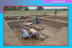 (ஊதுளைகள் அகழாய்வில் வெளிப்படுத்தப்படும் காட்சி - கொடுமணல்)