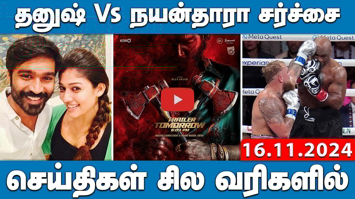 3 நொடி விடியோ! Nayanthara Vs Dhanush சர்ச்சை என்ன? | செய்திகள்: சில வரிகளில் 16.11.24