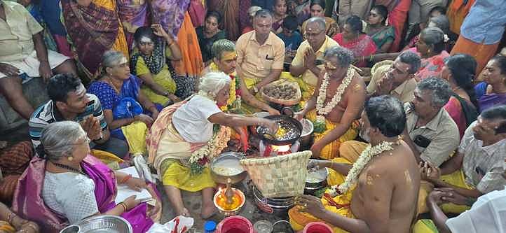 சிவராத்தி விழாவில் கொதிக்கும் நெய்யில் கையால் அப்பம் சுட்ட 93 வயது மூதாட்டி