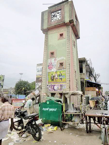 இந்த மணிக்கூண்டு கட்டப்பட்டது. ஐந்தாம் ஜார்ஜ் மன்னரின் முடிசூட்டு விழாவின்போது, இது திறக்கப்பட்டது. இந்த மணிக்கூண்டு அருகே மலர் அங்காடி, லாங்கு பஜார், மண்டி தெரு என வணிகப் பகுதியாகவே உள்ளது.