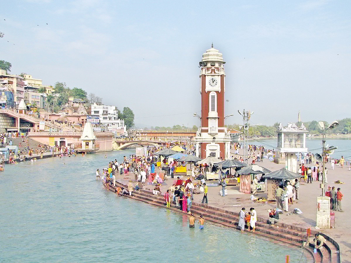 கங்கையின் பிரபல குளியல் கரையான ஹர்கி பெளரி படிகட்டுகளுக்கு எதிரே உள்ளது.