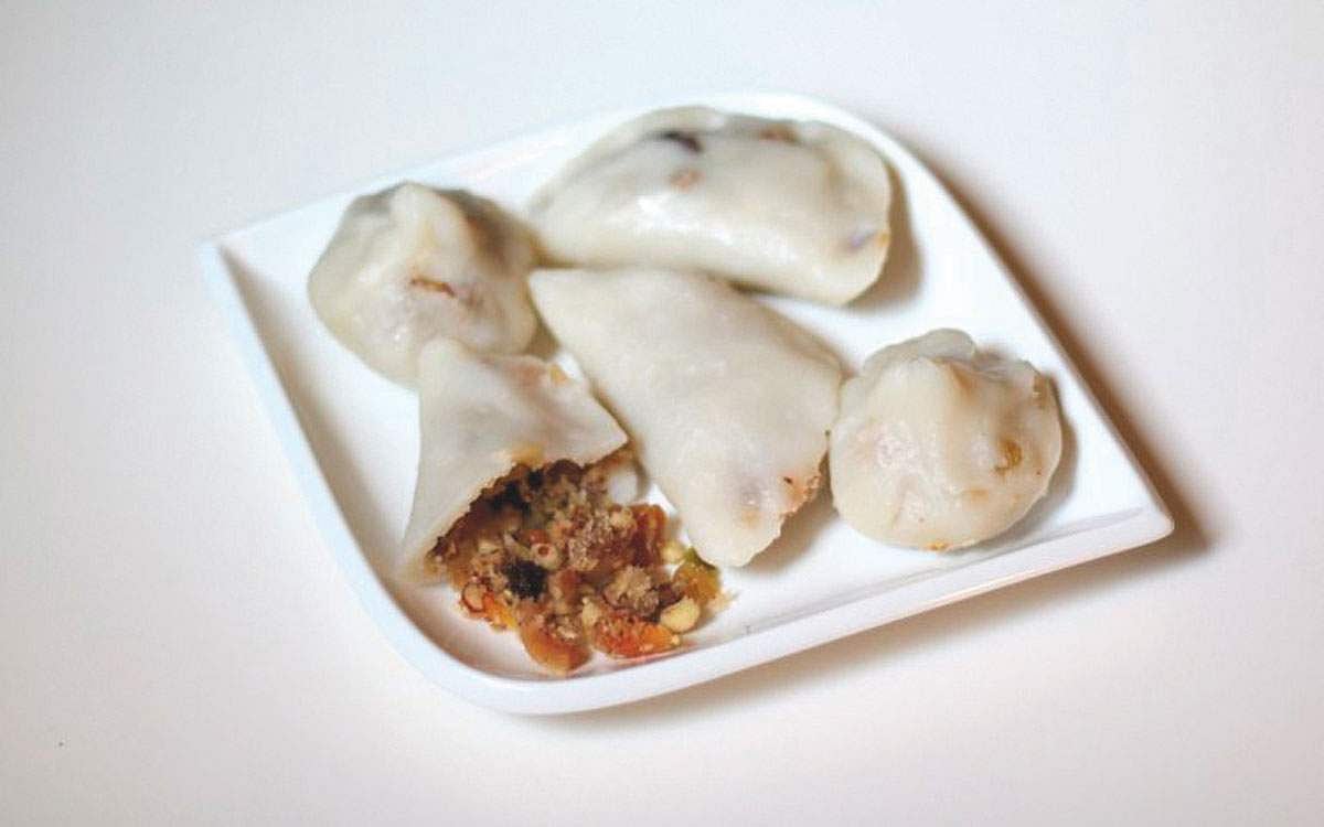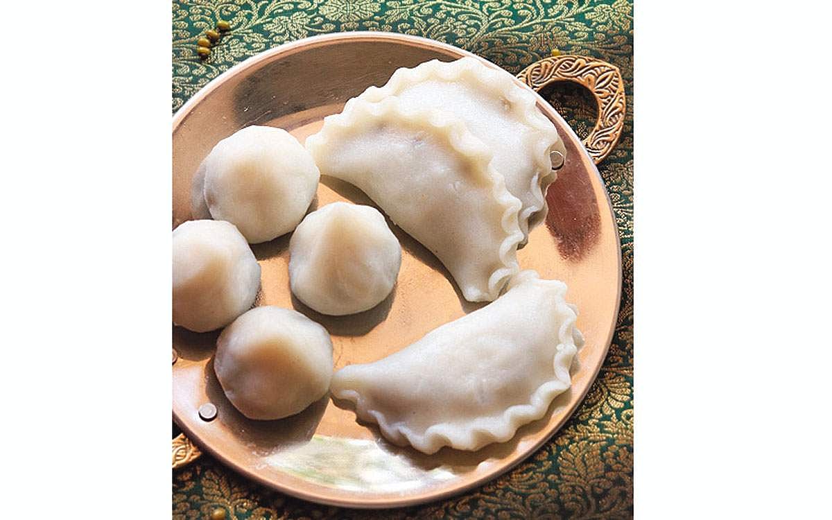 செய்முறை: கடலைப் பருப்பை வேக வைத்து எடுத்து அதில் தேங்காய்த் துருவல், நெய்யில் வறுத்து பொடித்த பாதாம், முந்திரி, திராட்சை, சர்க்கரை எல்லாவற்றையும் சேர்த்து கிளரி கீழே இறக்க வேண்டும். கொழுக்கட்டை மாவை செப்பாகச் செய்து நடுவில் ஒரு தேக்கரண்டி பூரணத்தை வைத்து மடித்து வேகவைத்து எடுக்க வேண்டும்.