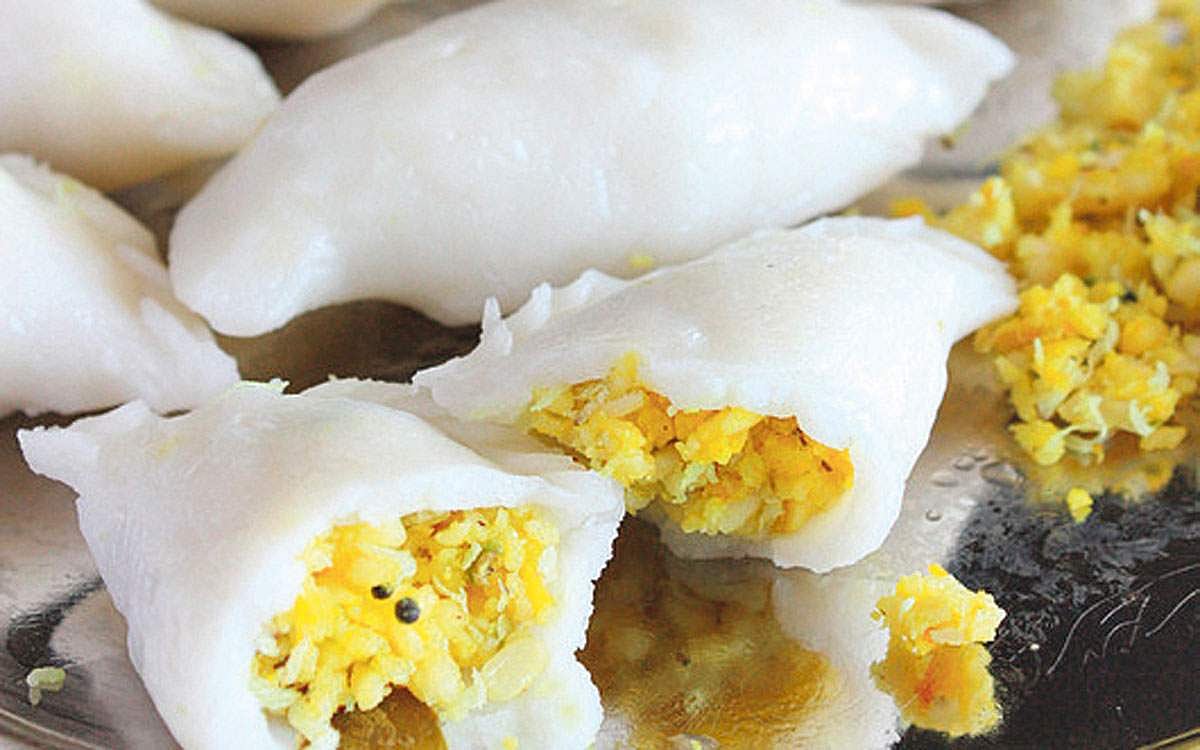 செய்முறை: பாசிப்பருப்பை பத்து நிமிடம் தண்ணீரில் ஊற வைத்து குழையாமல் மலர வேக வைக்க வேண்டும். பொடித்த வெல்லத்தை சூடான தண்ணீரில் கரையவிட்டு வடிகட்டி ஒரு வாணலியில் ஊற்றி பாசிப்பருப்பு தேங்காய்த் துருவல் சேர்த்து அடுப்பில் வைத்து லேசாக கிளறி ஏலப்பொடி, முந்திரி சேர்த்து சுருள கிளறி பூரணம் தயாரிக்க வேண்டும். கொழுக்கட்டை மாவை செப்பு மாதிரி செய்து அதில் சிறு சிறு உருண்டையாக பூரணத்தை வைத்து இட்லி தட்டில் வைத்து ஆவியில் பத்து நிமிடம் வேக வைத்து எடுக்க வேண்டும்.
