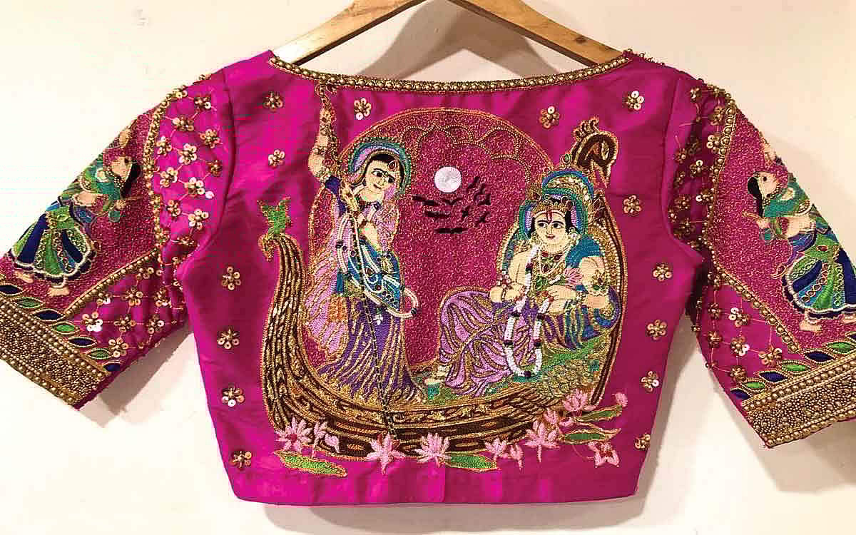 பெங்களூரைச் சேர்ந்த பெண்மணி ஒருவர் தனது புடவை பிளவுஸில் திருப்பதி ஏழுமலையான் உருவத்தைப் பொறித்துள்ளார். இவர் அணிந்துள்ள புடவையை ரூ.12 ஆயிரத்துக்கு வாங்கியுள்ளார். ஆனால், ஏழுமலையான் உருவம் பொறித்த பிளவுஸ் தயாரிப்பதற்கு மட்டும் ரூ.35 ஆயிரம் செலவழித்துள்ளார். இந்தக் கலை வேலைப்பாடுகள் நிறைந்த ஏழுமலையான் உருவம் பொறித்த பிளவுஸ் அணிந்த புகைப்படங்கள் இணையத்தில் வைரலானது.