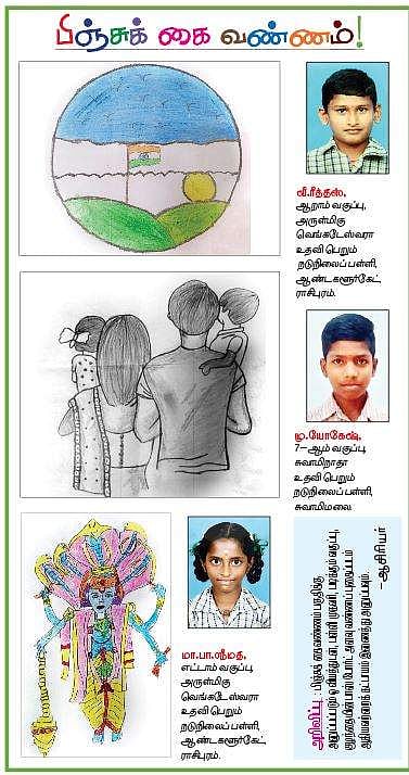 பிஞ்சுக் கைவண்ணம் பகுதிக்கு அனுப்பப்படும் ஓவியத்துடன், பள்ளி முகவரி, படிக்கும் வகுப்பு, குழந்தையின் பாஸ் போர்ட் அளவு வண்ணப் புகைப்படம் ஆகியவற்றைக் கட்டாயம் இணைத்து அனுப்பவும்.
