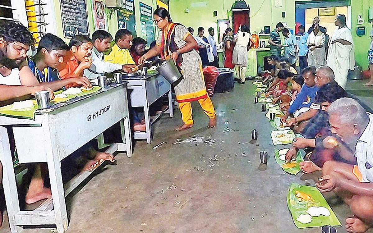 மதிய நேரத்தில் சாதம், சாம்பார், ரசம், உள்ளிட்ட வாழை இலைச் சாப்பாடு தினசரி 500 பேருக்கும், சுமார் 1500 பேருக்கு கலவை சாதமும் தயாரித்து தருகிறோம். சில நாட்களில் மட்டும் வடை,பாயாசத்துடன் உணவு இருக்கும். தினசரி எங்கள் ஆலயத்துக்கு காலை, மாலை இரு வேளையும் நேரில் வந்தும் 100க்கும் மேற்பட்டவர்கள் சாப்பிடுகிறார்கள். இரவில் ஆலயத்தில் தங்கி இருப்பவர்கள் 20 பேர் உட்பட மொத்தம் 120 பேருக்கு பொங்கல், சாம்பார் சாதம் மற்றும் கலவை சாதம் தயாரித்து கொடுக்கிறோம். மழைக்காலம் தொடங்கி இருப்பதால் கடந்த ஒரு வாரமாக எங்களிடம் உணவுப் பொட்டலங்கள் தருமாறு கேட்கிறார்கள். மழையால் பாதிக்கப்பட்டவர்களுக்காகவும் தினசரி 1000 உணவுப் பொட்டலங்கள் தயாரித்து வழங்கி வருகிறோம். எது எப்படி இருந்தாலும் தினசரி 5 ஆயிரம் பேருக்கு உணவு வழங்கி விடுவோம்.