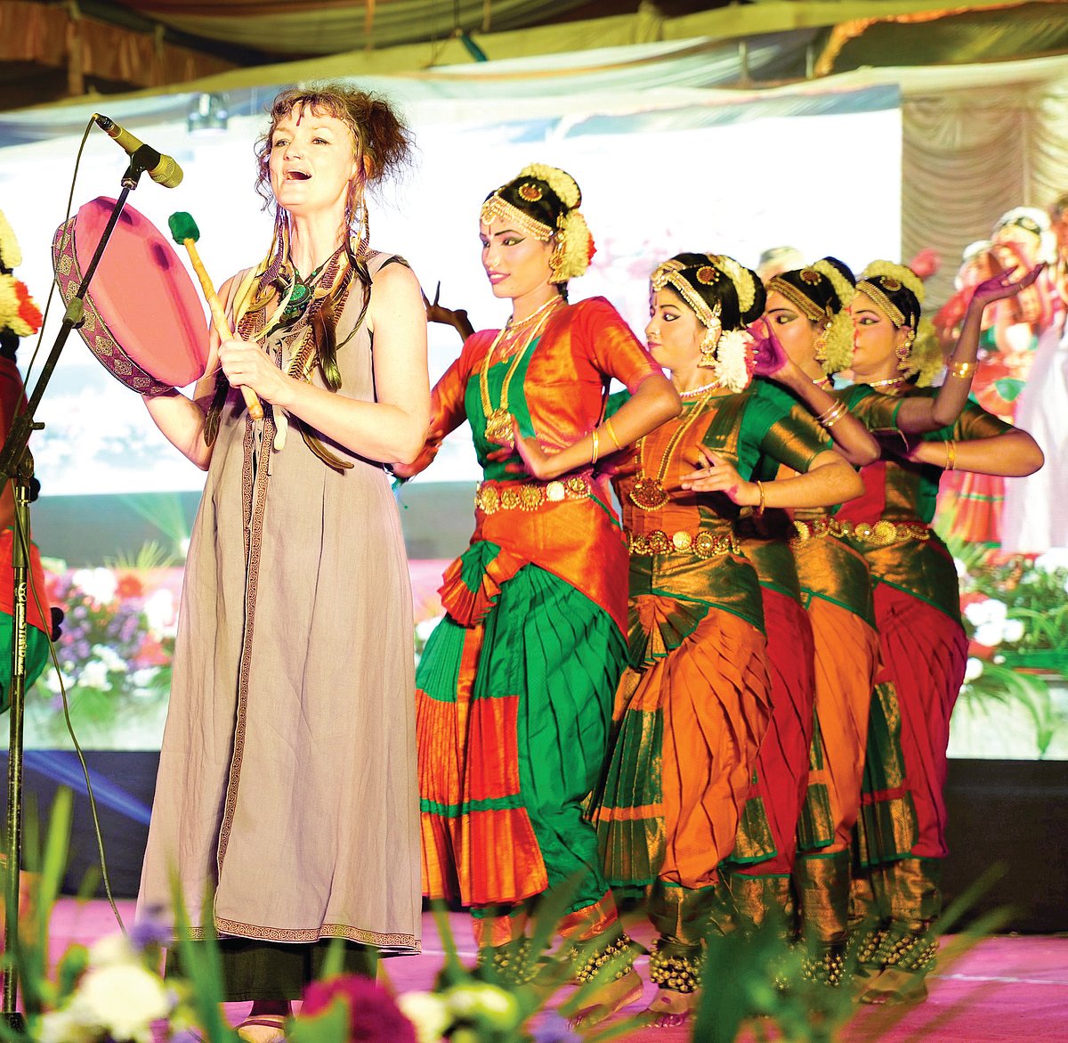 பிரான்ஸ் நாட்டு இசைக்கு பாரதியார் கலைக்கூட மாணவியர் அபிநயம் பிடித்து பரதநாட்டியமாடி பார்வையாளர்களைப் பரவசப்படுத்தினர். அவர்களுடன் பிரான்ஸ் நடனக் கலைஞர் லில்லி ஜங்க் இணையாக பரதநாட்டிய அபிநயத்தை விரல்கள்,முகபாவங்களில் காட்டி அசத்தினார்.