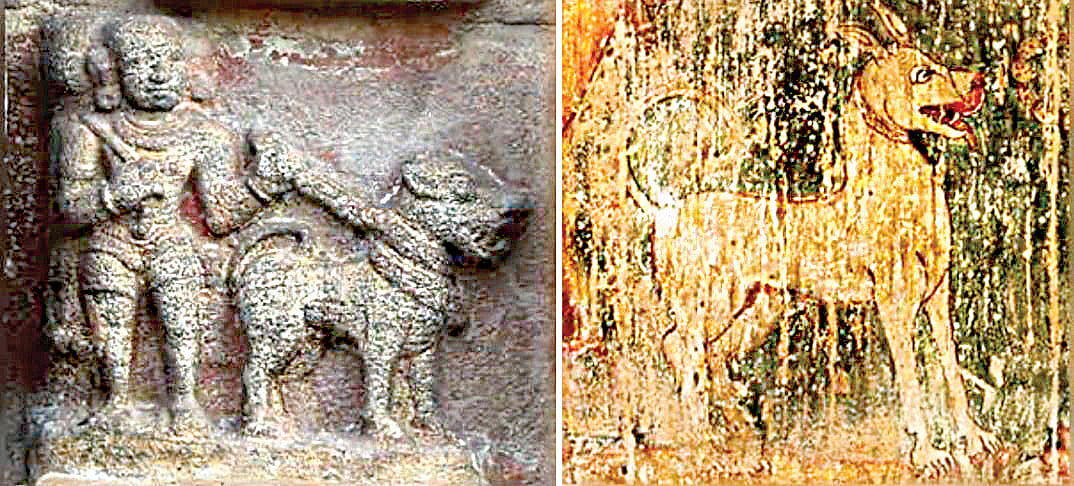 தஞ்சாவூர் பெரிய கோயிலிலுள்ள சோழர் கால ஓவியங்களில் அலங்கு நாய் இடம்பெற்றுள்ளது. 12 -ஆம் நூற்றாண்டில் கட்டப்பட்ட தாராசுரம் கோயிலில் அலங்குக்கு புடைப்புச் சிற்பமும் உள்ளது.