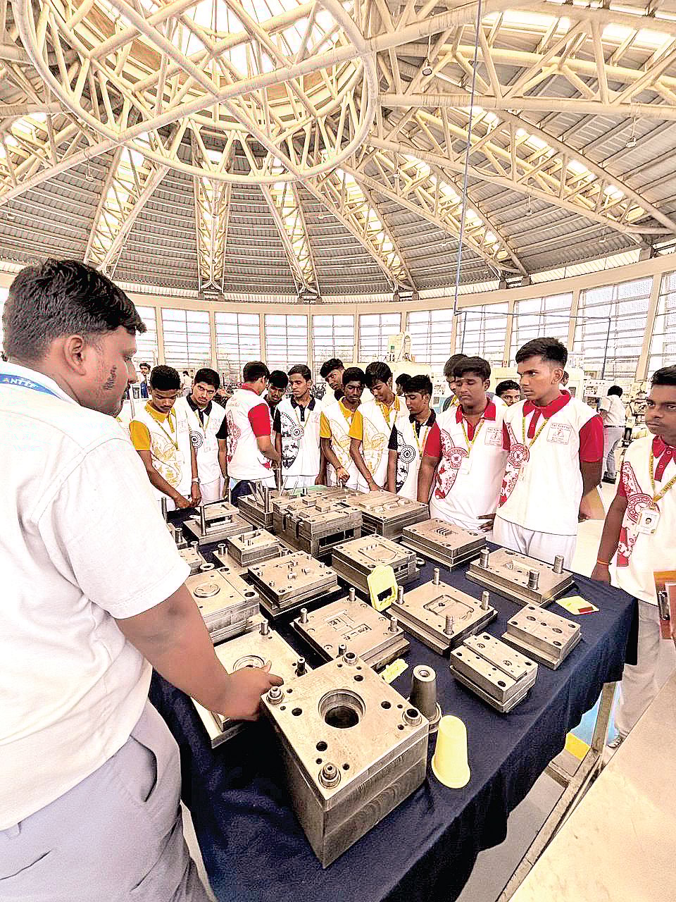தொழிற்சாலையில் ஒரு கருவி இயந்திரத்தில் தயாராகும் விதம் குறித்து டூல் மேக்கிங் பிரிவு மாணவர்கள் உருவாக்கிய படைப்பு கண்காட்சியில் பெரிதும் கவனத்தை ஈர்த்தது.
