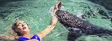 கடந்த மாதம் பஹாமஸ் தீவுக்குச் சென்ற காதரினா கடலுக்கு அடியில் சுறா மீன்கள் நீந்துவதைப் பார்த்து அவற்றுடன் புகைப்படம் எடுக்க முடிவு செய்து நீரில் குதித்தார்.
